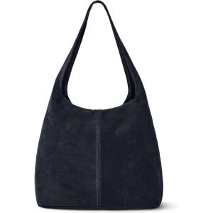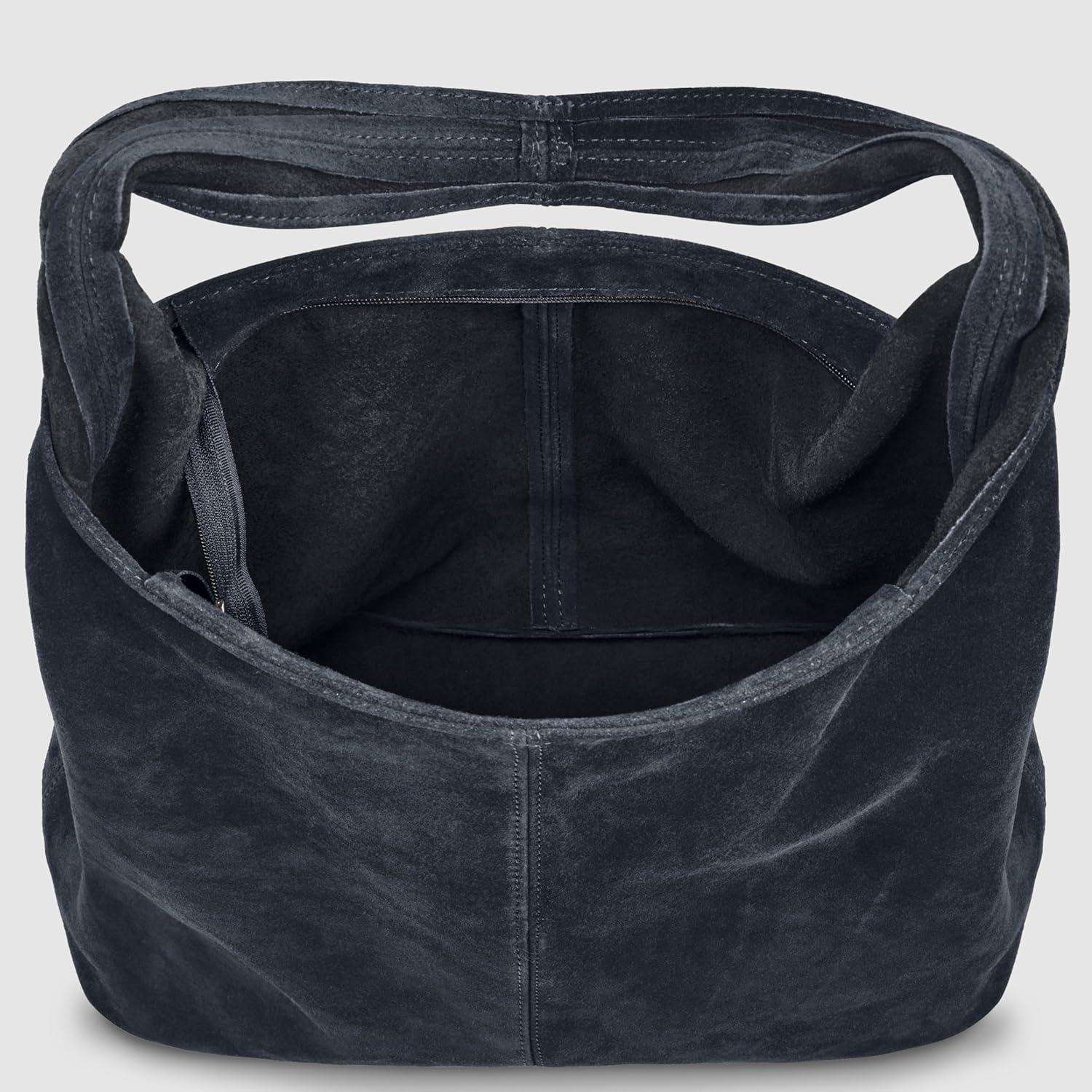 Italian Genuine Suede Hobo Bag for Women with Zipper and Single Strap | Large Soft Slouchy Shoulder Handbag Purse(Dark Blue)