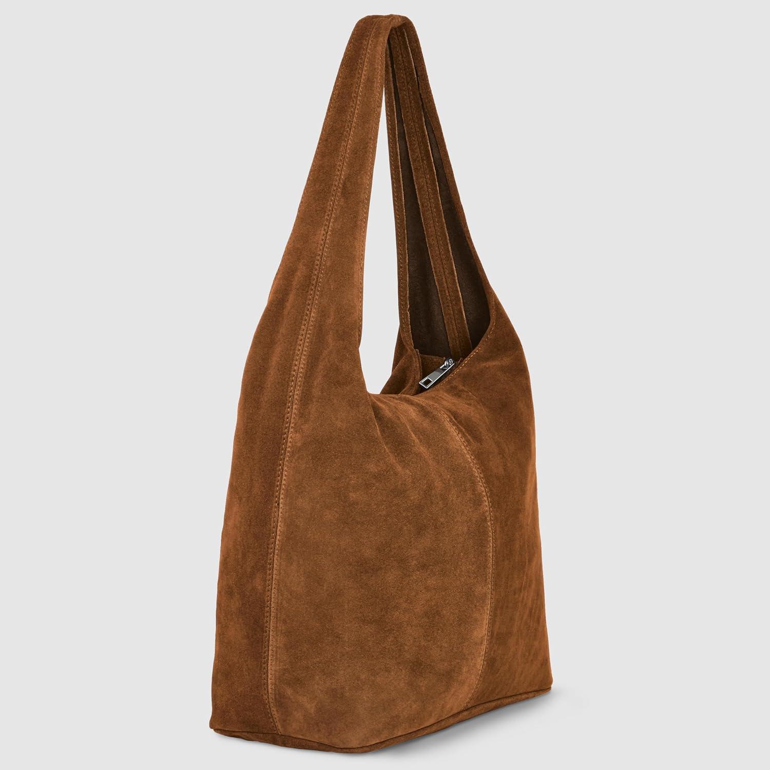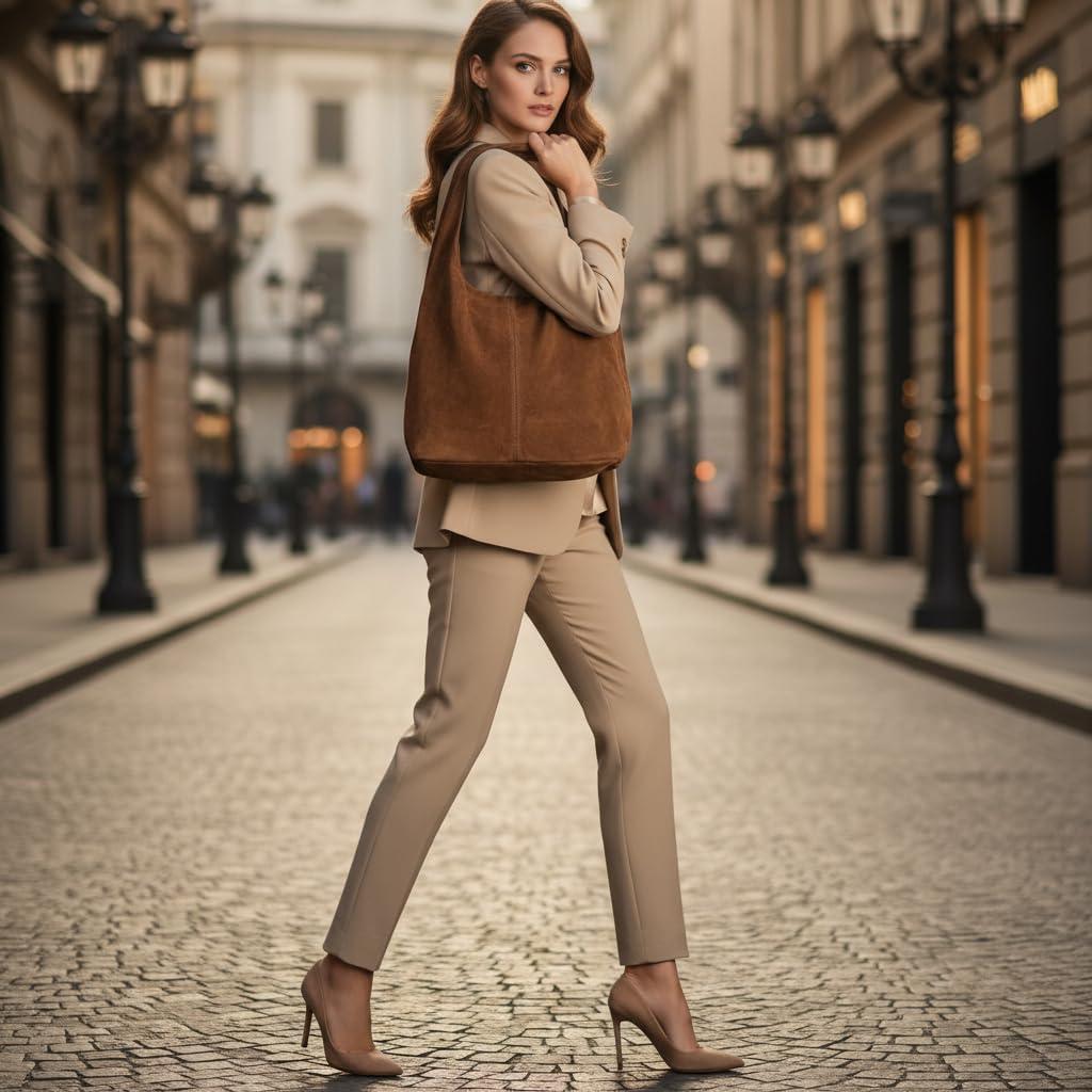 Italian Genuine Suede Hobo Bag for Women with Zipper and Single Strap | Large Soft Slouchy Shoulder Handbag Purse(Mocha)