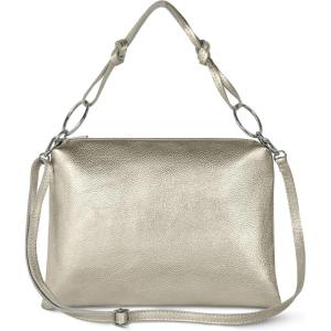 This Italian-made bag combines timeless elegance with everyday practicality. Crafted from natural calf leather with a fine pebbled texture and subtle satin sheen, it offers a sophisticated look while its finish provides protection against moisture and dirt. The semi-rigid structure keeps its clean rectangular shape but remains comfortable to wear. A short top handle with decorative knots and polished gold rings adds a refined touch, while the adjustable long strap allows both shoulder and crossbody carry. The secure metal zipper and high-shine gold-tone hardware give the design a polished finish without unnecessary details. Inside, a smooth polyester twill lining ensures durability, complemented by a roomy main compartment and a built-in interior zip pocket for smaller items. With neat stitching, balanced proportions, and a minimalist silhouette, this medium-sized bag is versatile enough for work, daily wear, or evening outings, offering lasting style and thoughtful craftsmanship.
