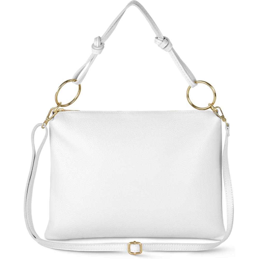 Italian Calf Leather Shoulder Bag for Women | Rectangular Handbag Purse with Zipper, Top-Handle & Crossbody Strap(White)