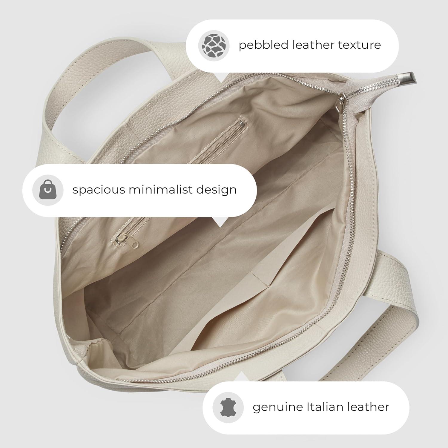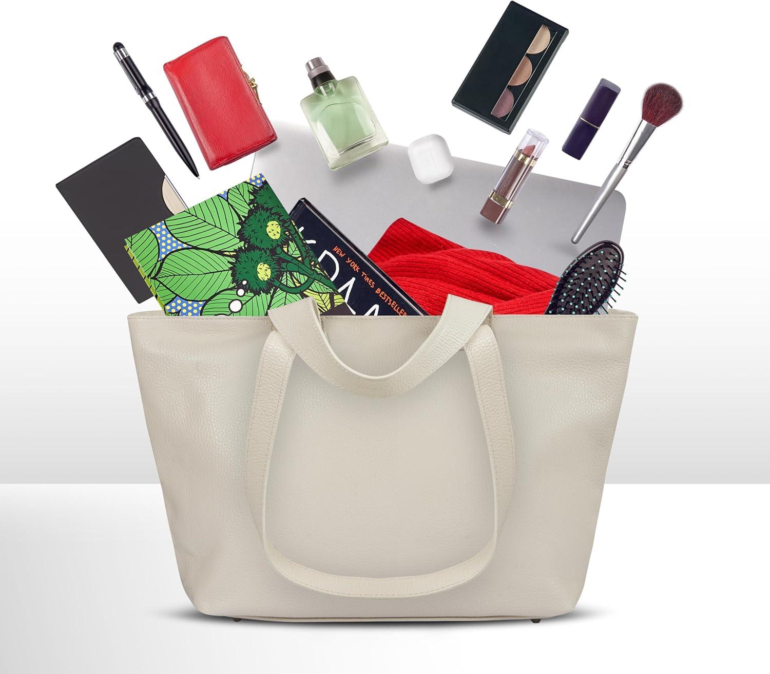 Italian Calf Leather Tote Bag for Women with Zipper & Adjustable Strap | Medium Pebbled Soft Shoulder Handbag(Brown)